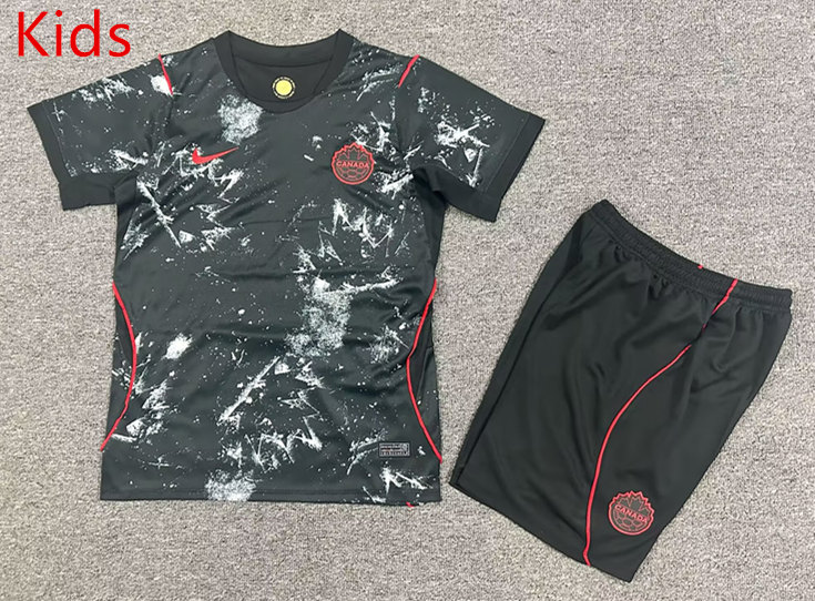 Product Name:26-27 Canada Away Black Kids/Youth Soccer Uniform-7809