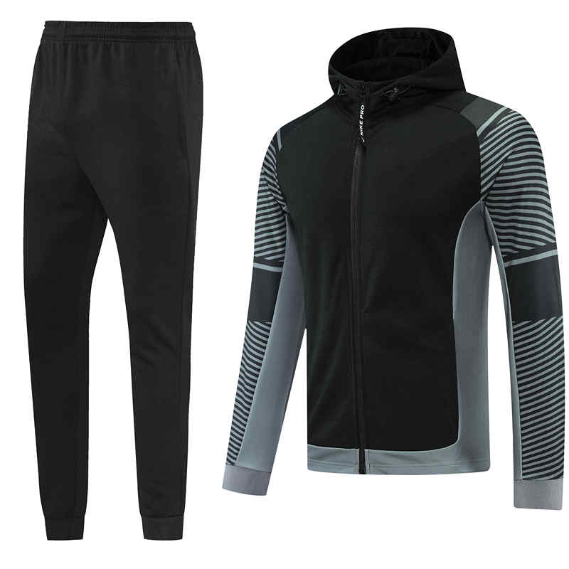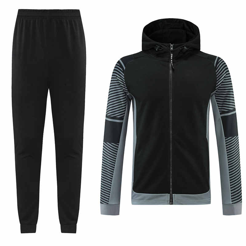 Product Name:Black&Gray Thailand Soccer Jacket Uniform With Hat-LH