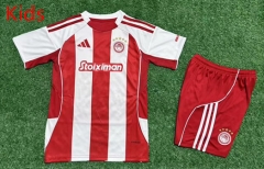 25-26 Olympiacos F.C. Home Red&White kids Soccer Uniform -5526