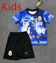2025-2026 Cristiano Ronaldo Special Version Real Madrid Home Blue Kids/Youth Soccer Uniform-0973
