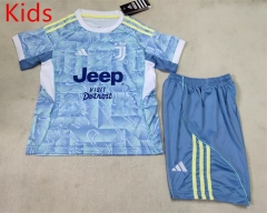 2025-26 Juventus Goalkeeper Blue Soccer kids Uniform-AY