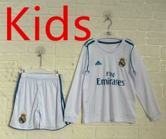Retro Version 2017-2018 Real Madrid Home White LS Kids/Youth Soccer Uniform-2483