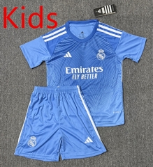 2025-26 Real Madrid Goalkeeper Blue Kids/Youth Soccer Uniform-8679