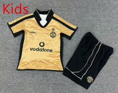 Retro Version Double-sided Centennial Edition Manchester United Golden &White Kids/Youth Soccer Uniform-7809