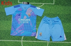 2024-2025 Real Madrid Goalkeeper Laker Blue Kids/Youth Soccer Uniform-709