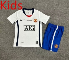 Retro Version 08-09 Manchester United Away White Kids/Youth Soccer Uniform-7809