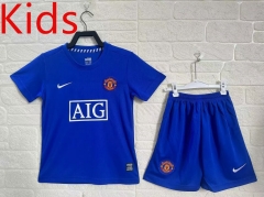 Retro Version 08-09 Manchester United 2nd Away Blue Kids/Youth Soccer Uniform-5074