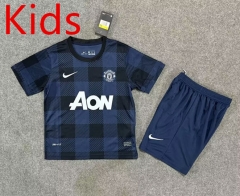 Retro Version 13-14 Manchester United Away Royal Blue Kids/Youth Soccer Uniform-8975