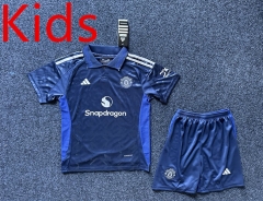 2024-2025 Manchester United Away Royal Blue Kids/Youth Soccer Uniform-5526